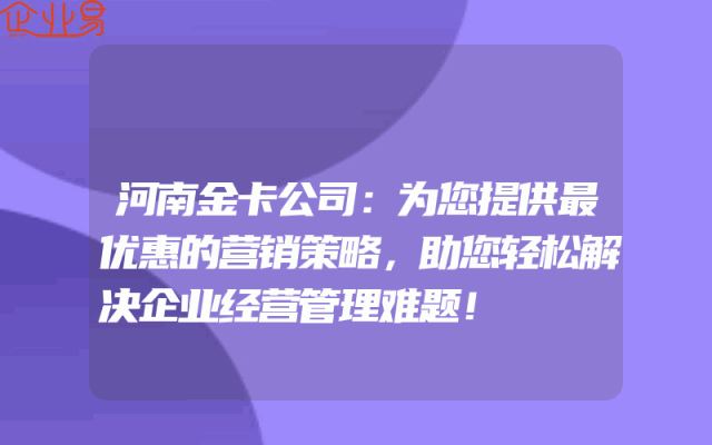- 河南金卡公司:为您提供最优惠的营销策略,助您轻松解决企业经营管理难题!