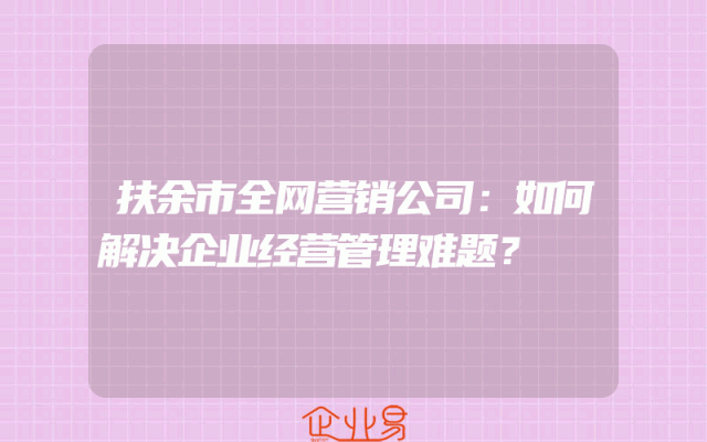 - 扶余市全网营销公司:如何解决企业经营管理难题?