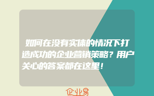 - 如何在没有实体的情况下打造成功的企业营销策略?用户关心的答案都在这里!