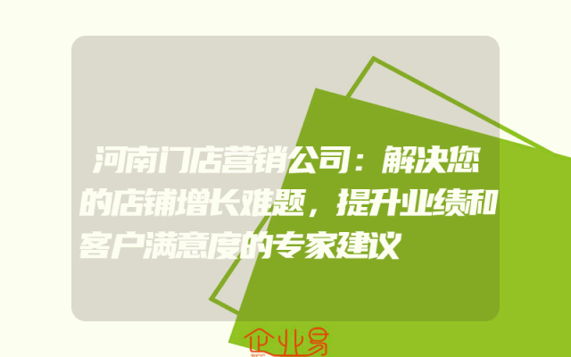 - 河南门店营销公司:解决您的店铺增长难题,提升业绩和客户满意度的专家建议