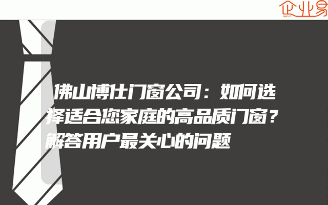 - 佛山博仕门窗公司:如何选择适合您家庭的高品质门窗?解答用户最关心的问题