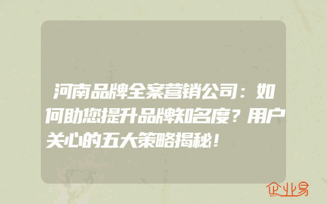 - 河南品牌全案营销公司:如何助您提升品牌知名度?用户关心的五大策略揭秘!