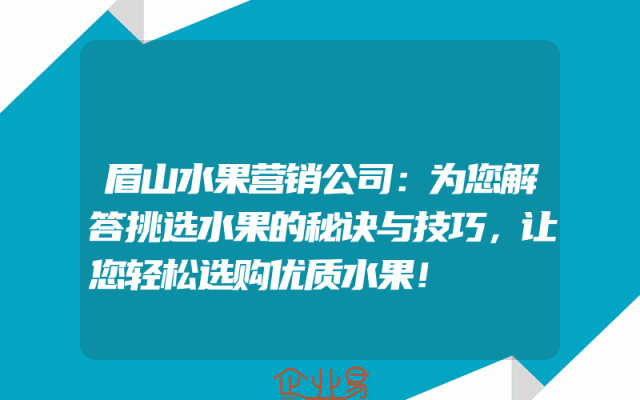 - 眉山水果营销公司:为您解答挑选水果的秘诀与技巧,让您轻松选购优质水果!