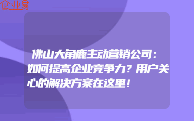 - 佛山大角鹿主动营销公司:如何提高企业竞争力?用户关心的解决方案在这里!
