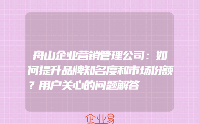 - 舟山企业营销管理公司:如何提升品牌知名度和市场份额?用户关心的问题解答