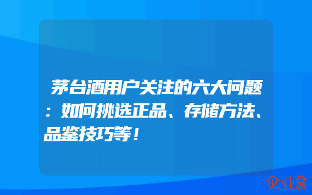- 茅台酒用户关注的六大问题:如何挑选正品、存储方法、品鉴技巧等!