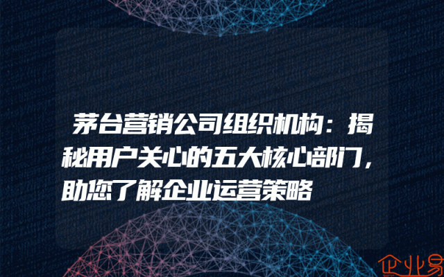 - 茅台营销公司组织机构:揭秘用户关心的五大核心部门,助您了解企业运营策略