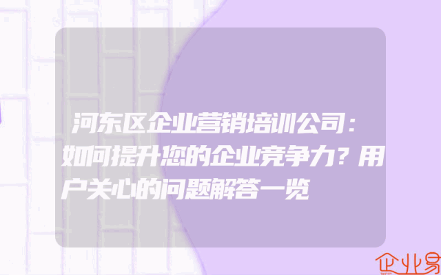 - 河东区企业营销培训公司:如何提升您的企业竞争力?用户关心的问题解答一览