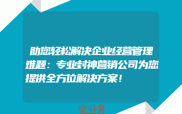 - 助您轻松解决企业经营管理难题:专业封神营销公司为您提供全方位解决方案!