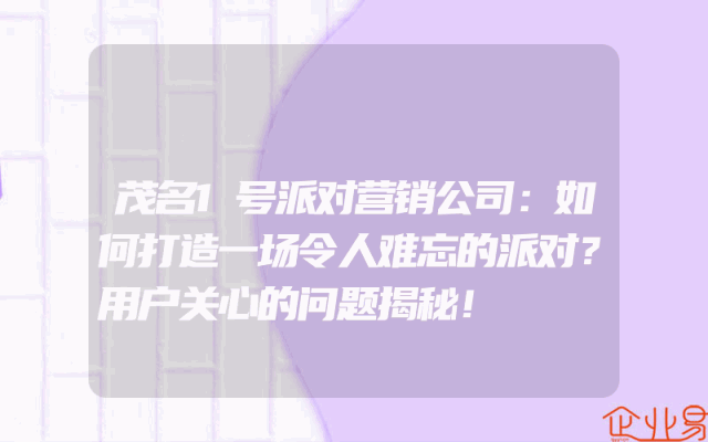 - 茂名1号派对营销公司:如何打造一场令人难忘的派对?用户关心的问题揭秘!