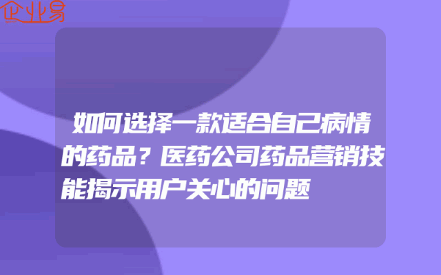 - 如何选择一款适合自己病情的药品?医药公司药品营销技能揭示用户关心的问题