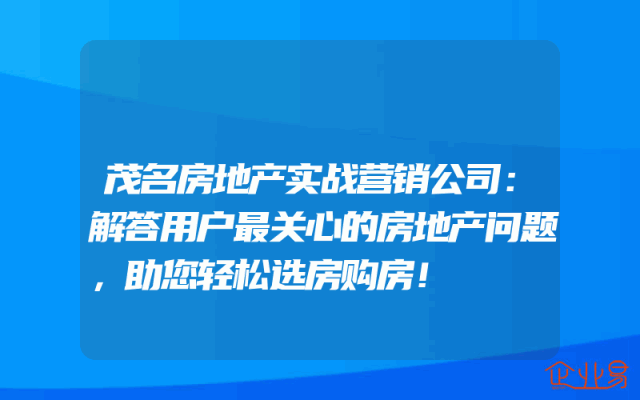- 茂名房地产实战营销公司:解答用户最关心的房地产问题,助您轻松选房购房!