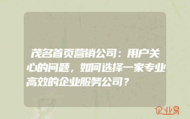 - 茂名首页营销公司:用户关心的问题,如何选择一家专业高效的企业服务公司?