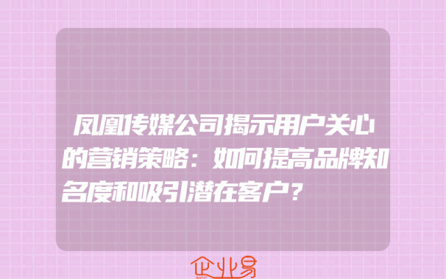 - 凤凰传媒公司揭示用户关心的营销策略:如何提高品牌知名度和吸引潜在客户?