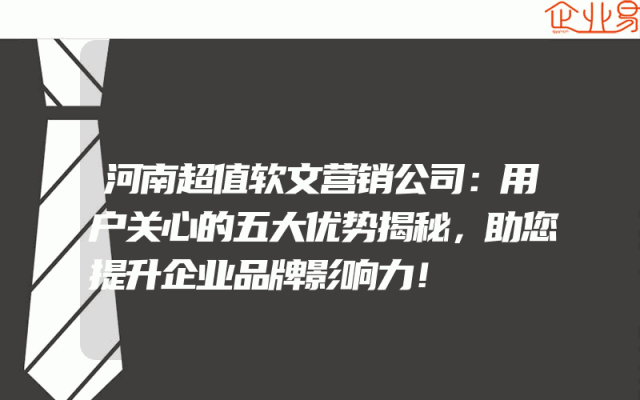 - 河南超值软文营销公司:用户关心的五大优势揭秘,助您提升企业品牌影响力!