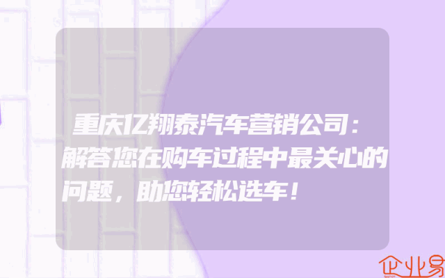 - 重庆亿翔泰汽车营销公司:解答您在购车过程中最关心的问题,助您轻松选车!