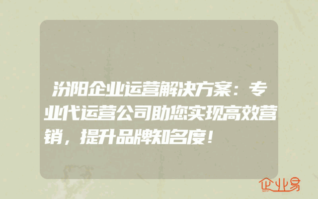 - 汾阳企业运营解决方案:专业代运营公司助您实现高效营销,提升品牌知名度!