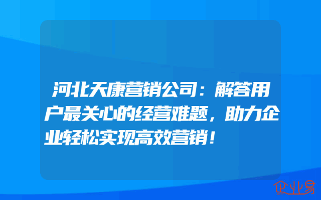 - 河北天康营销公司:解答用户最关心的经营难题,助力企业轻松实现高效营销!