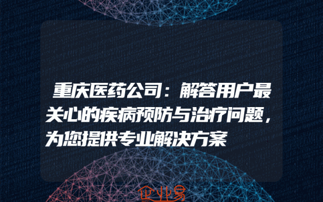 - 重庆医药公司:解答用户最关心的疾病预防与治疗问题,为您提供专业解决方案