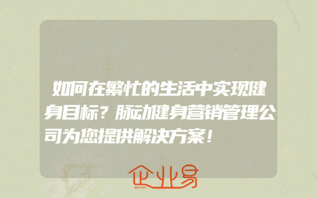 - 如何在繁忙的生活中实现健身目标?脉动健身营销管理公司为您提供解决方案!