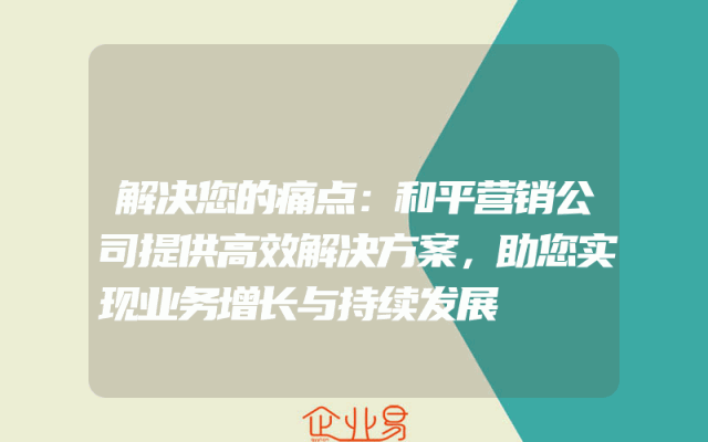 - 解决您的痛点:和平营销公司提供高效解决方案,助您实现业务增长与持续发展