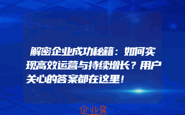 - 解密企业成功秘籍:如何实现高效运营与持续增长?用户关心的答案都在这里!