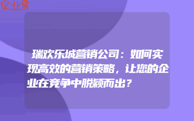 - 瑞欢乐城营销公司:如何实现高效的营销策略,让您的企业在竞争中脱颖而出?