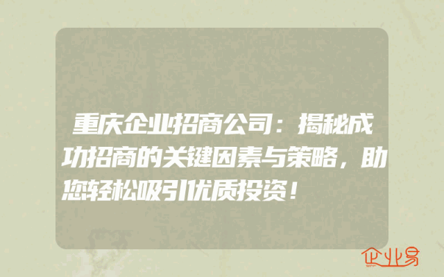 - 重庆企业招商公司:揭秘成功招商的关键因素与策略,助您轻松吸引优质投资!