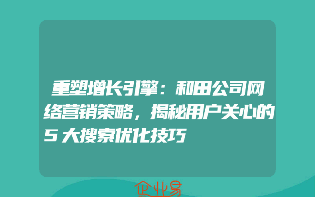 - 重塑增长引擎:和田公司网络营销策略,揭秘用户关心的5大搜索优化技巧