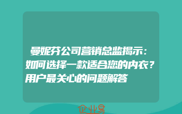 - 曼妮芬公司营销总监揭示:如何选择一款适合您的内衣?用户最关心的问题解答