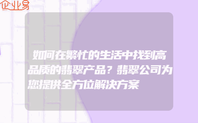 - 如何在繁忙的生活中找到高品质的翡翠产品?翡翠公司为您提供全方位解决方案