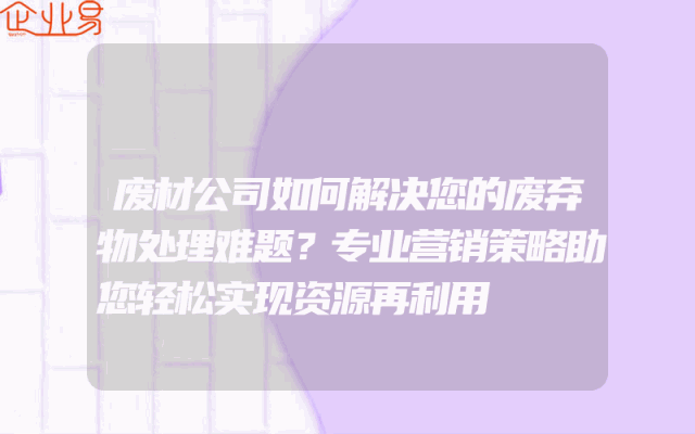 - 废材公司如何解决您的废弃物处理难题?专业营销策略助您轻松实现资源再利用