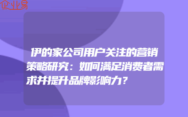 - 伊的家公司用户关注的营销策略研究:如何满足消费者需求并提升品牌影响力?