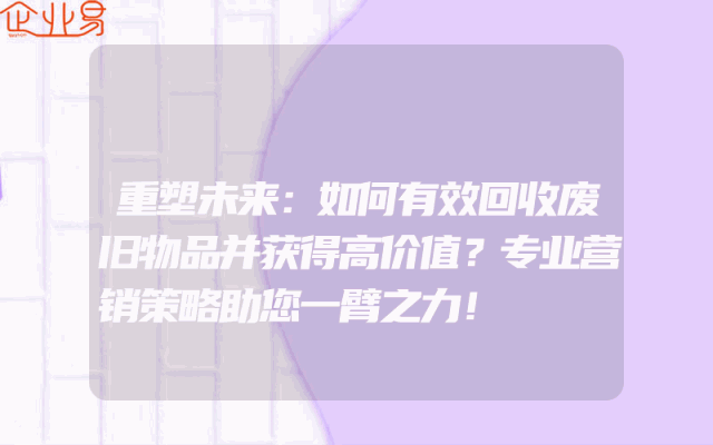 - 重塑未来:如何有效回收废旧物品并获得高价值?专业营销策略助您一臂之力!