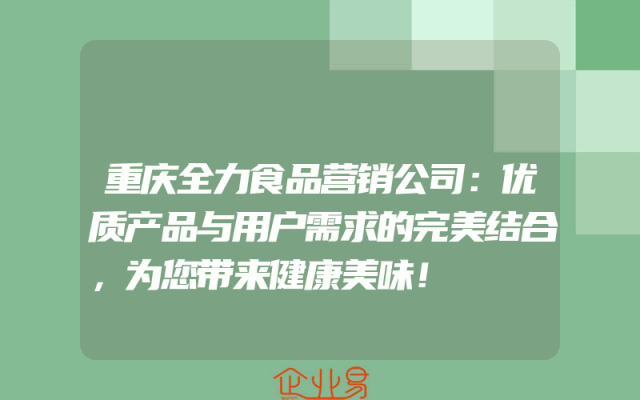 - 重庆全力食品营销公司:优质产品与用户需求的完美结合,为您带来健康美味!