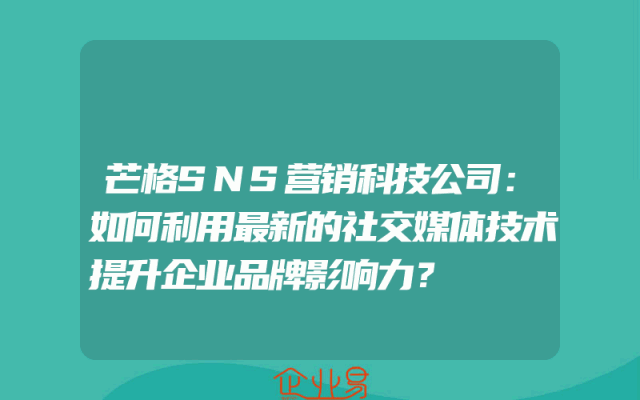 - 芒格SNS营销科技公司:如何利用最新的社交媒体技术提升企业品牌影响力?