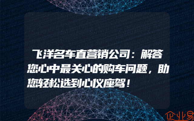 - 飞洋名车直营销公司:解答您心中最关心的购车问题,助您轻松选到心仪座驾!