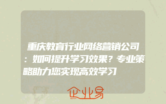 - 重庆教育行业网络营销公司:如何提升学习效果?专业策略助力您实现高效学习