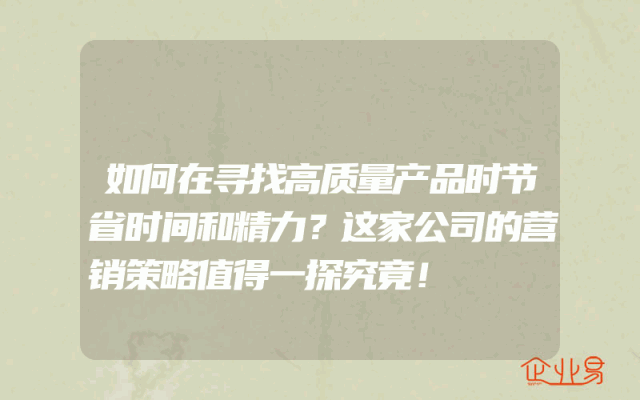 - 如何在寻找高质量产品时节省时间和精力?这家公司的营销策略值得一探究竟!