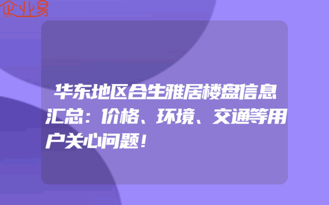 - 华东地区合生雅居楼盘信息汇总:价格、环境、交通等用户关心问题!
