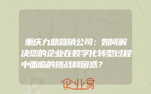 - 重庆九鼎营销公司:如何解决您的企业在数字化转型过程中面临的挑战和困惑?