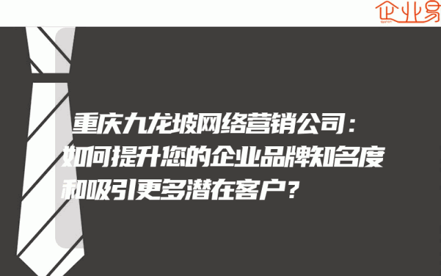 - 重庆九龙坡网络营销公司:如何提升您的企业品牌知名度和吸引更多潜在客户?