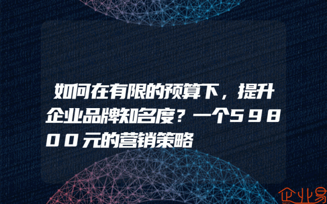 - 如何在有限的预算下,提升企业品牌知名度?一个59800元的营销策略