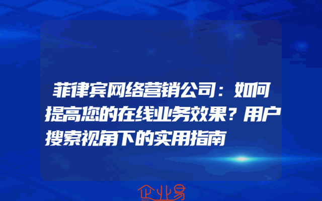 - 菲律宾网络营销公司:如何提高您的在线业务效果?用户搜索视角下的实用指南