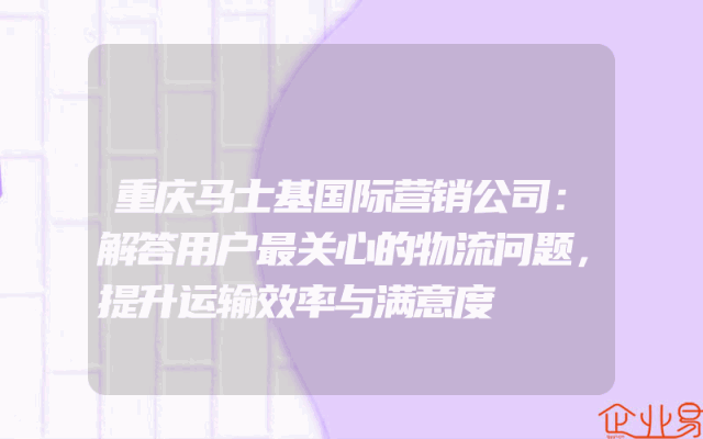 - 重庆马士基国际营销公司:解答用户最关心的物流问题,提升运输效率与满意度