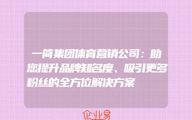 - 一简集团体育营销公司:助您提升品牌知名度、吸引更多粉丝的全方位解决方案