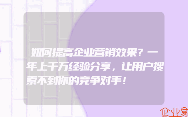 - 如何提高企业营销效果?一年上千万经验分享,让用户搜索不到你的竞争对手!