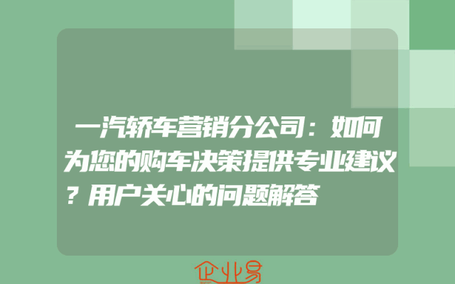 - 一汽轿车营销分公司:如何为您的购车决策提供专业建议?用户关心的问题解答