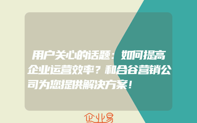 - 用户关心的话题:如何提高企业运营效率?和合谷营销公司为您提供解决方案!