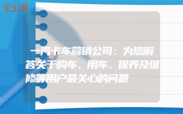 - 一汽卡车营销公司:为您解答关于购车、用车、保养及维修等用户最关心的问题